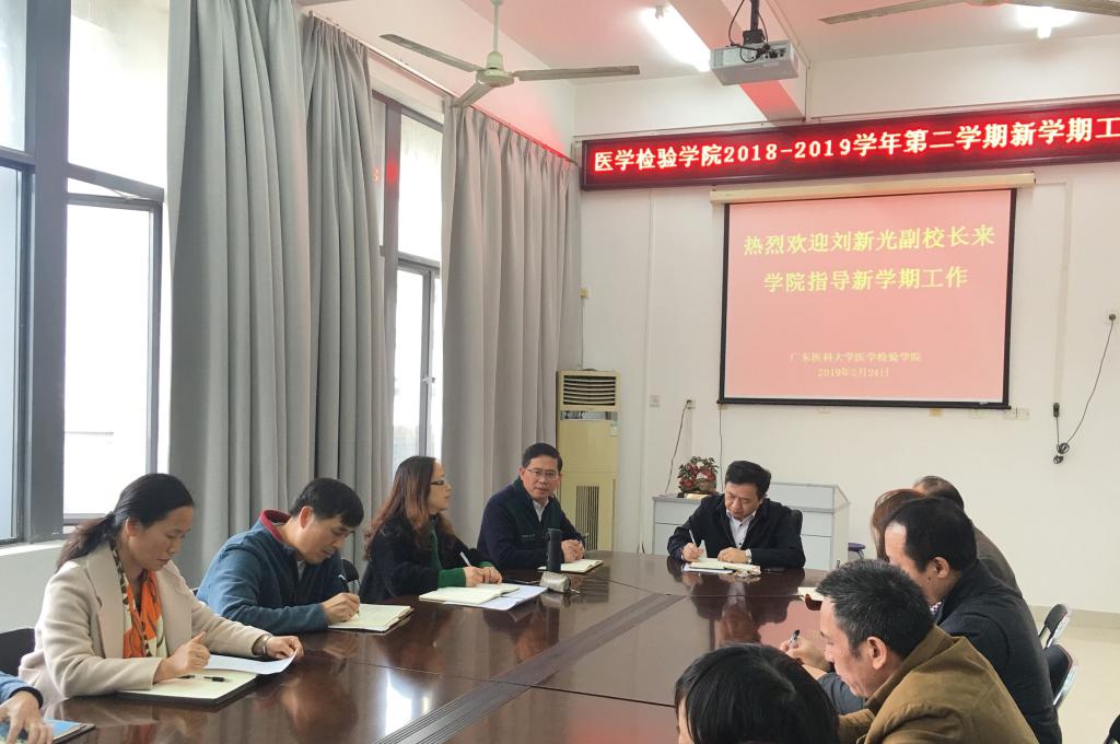 24日下午3时,刘新光副校长一行莅临医学检验学院调研新学期教学工作准备情况,随行的有学校设备处邓树勇处长、校人事处教师发展中心徐美奕副处长以及教务处代表。医学检验学院参加调研会的有徐军发院长、党委宁静书记、党委黄育宽副书记、副院长阮杰以及学院全体教职人员。会议由徐军发院长主持。