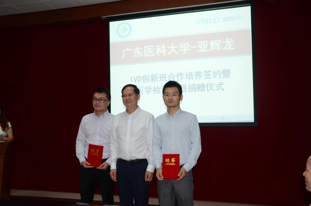 据悉,亚辉龙公司经过三批次捐赠,已为创新实验平台捐赠价值1000余万元的检验仪器设备,总计30余台套。拟每年捐资3万元用于设立“亚辉龙”奖学金,合约期五年,以奖励“亚辉龙班”成绩优异的在读本科学生。(医学检验学院供稿)