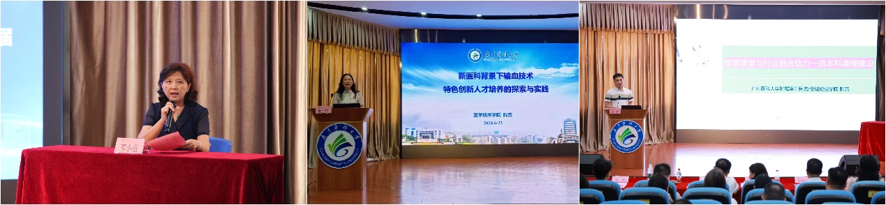 学术会议聚焦输血医学教学、输血行业发展动态展、东莞市用血情况、临床案例分析、实验诊断等展开。高校临床输血教育分享环节首先由广州医科大学金域检验学院副院长邓小燕主持。伟德国际1946源于英国党委书记阮杰做题为《新医科背景下输血技术特色创新人才培养的探索与实践》的报告,她基于广东医科大学的人才培养定位及“学院+书院+产业学院”创新人才培养模式,结合输血医学高等教育的现状及面临的问题,介绍了以一流课程建设和特色创新班建设为抓手培养输血检验人才的实践经验。广州医科大学金域检验学院输血教研室主任彭亮做题为《智慧课堂与行业融合助力一流本科课程建设》的报告,他详细介绍了“双智慧三融合”输血创新人才培养新模式,即智慧医院智慧课堂相结合,医工、产教、思政三融合,通过打造一流的师资、一流的课程、一流的课堂,培养一流的输血人才。