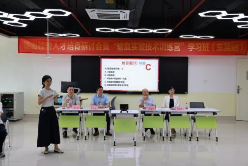 6月22日,在广东医科大学东莞校区智慧教室B201举办了一场别开生面的临床输血知识竞赛。参与本次比赛的6组参赛队伍分别来自广东医科大学(3组)和广州医科大学(3组)的2021级医学检验技术专业本科学生。本次竞赛由广东省基层医药学会输血专业委员会、广州医科大学金域检验学院和伟德国际1946源于英国共同主办。广东省基层医药学会输血专业委员会赵阳主任委员、章小东副主任委员,东莞妇幼保健院输血科吴远军主任、广州医科大学金域检验学院输血教研室黄爱群副主任担任本次比赛的评委。