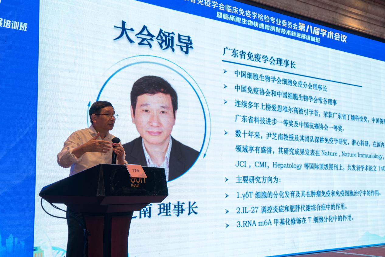 暨南大学生物医学转化研究院院长、广东省免疫学会理事长尹芝南教授致开幕辞。尹教授首先对本次大会的成功召开表示了祝贺和肯定,对临床免疫学检验专业委员会过去的工作表示赞赏,并对未来免疫学检验领域的发展趋势进行了展望。他指出,免疫学的基础研究应该加强与临床的相结合,研究的成果要及时转化,应用到临床中去,为临床服务。