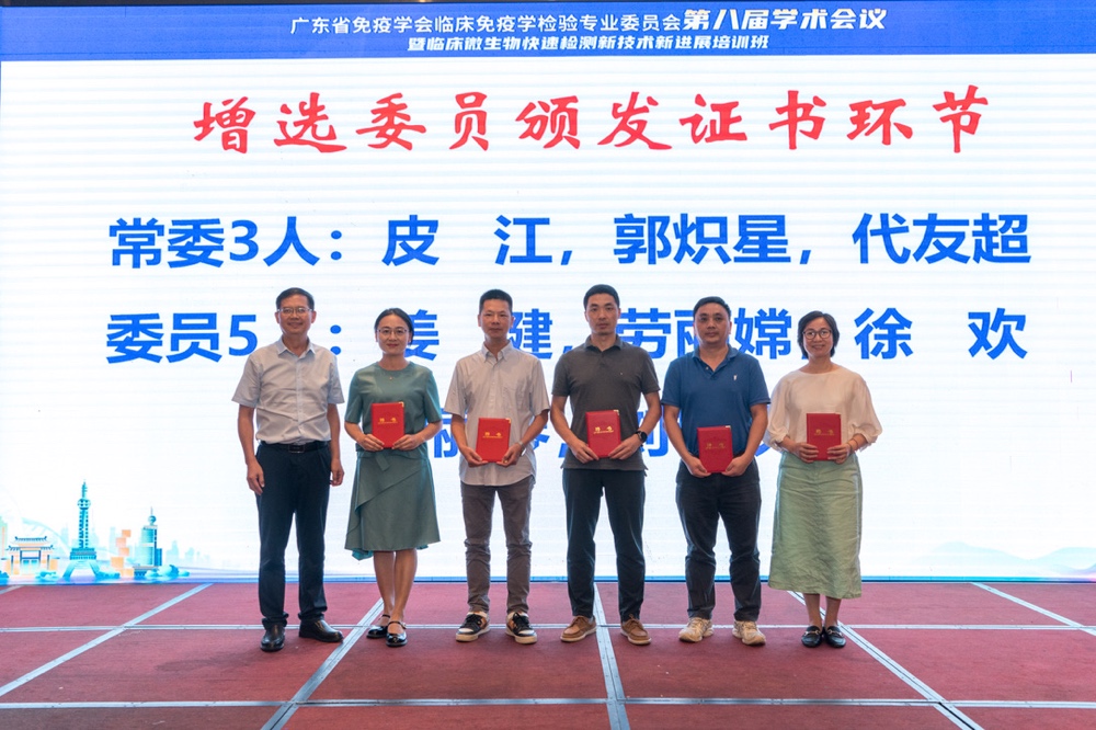 学术报告后,本届会议特别安排了增选委员颁发证书环节,广东省免疫学会临床免疫学检验专业委员会主任委员徐军发教授代表委员会为新当选的各位常委和委员颁发了证书。