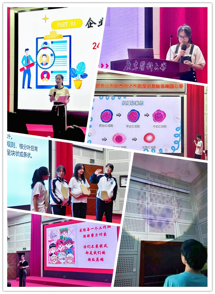 趣说细胞比赛火热进行,各队伍以其独特创意和精彩演绎,为观众带来一场细胞知识的盛宴。“金元胞奖组委会”以“金元胞”奖颁奖仪式为核心,巧妙融合了主持人串词与AI语音合成技术,生动介绍红细胞系统和浆细胞系统的形态特征。“从容应队”结合急性白血病的案例,通过“情景剧+小人书”的创意形式,细致描绘了单核细胞和巨核细胞各阶段形态。“欢乐斗地组”以幽默风趣地方式讲述了红细胞和浆细胞的成长之路。“细胞求职记”以“人类有限公司CEO遭遇病毒危机,淋巴细胞系统与粒细胞系统前来应聘”为背景,通过逗趣的情节展示了细胞形态及功能。“粒粒皆辛苦队”利用投影原理,将细胞结构拆分并“组装”在透明膜上,通过光影变化动态呈现细胞模型,直观展示粒系统和淋巴系统的细胞形态。“风雨无组”通过巨核细胞家族和单核细胞家族的对话与探索,揭开两个细胞家族的神秘面纱,创意独特,充满想象力。各队伍全力以赴,将细胞知识以生动有趣的方式呈现给观众。