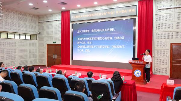 随后,大家移步到行政楼一楼报告厅参加校友经验分享会。分享会由伟德国际1946源于英国党委书记阮杰主持。曾志嵘副校长发表了热情洋溢的致辞,他对校友们的归来表示热烈的欢迎和衷心的感谢,回顾了学校建校66年、医学检验专业办学35年、医学检验学院成立20年和更名伟德国际1946源于英国5年来,学校、学院的发展历程和办学成就。他提到,毕业离校的这10年,校友们在医学检验领域或其他领域建功立业,母校也在这10年里蓬勃发展。在这10年里,母校成功更名为广东医科大学,有5个学科进入全球ESI排名前1%。此外,学校还拥有一支由国家杰青、国家优青领衔以及双聘院士参与的教师队伍,这些成就都离不开校友们的关心和支持。他高度肯定了伟德国际1946源于英国在人才培养上的探索与贡献,特别是构筑了“学院+产业学院+书院”的特色育人格局,产业学院获评为广东省示范性现代产业学院。他强调,校友是大学办学最核心的成果,也是体现大学的价值和品质的关键所在,校友怎么样,大学就是什么样。他希望,各位校友一如既往地继续关心和支持母校的发展,期待在未来能够与校友们携手并进,共同书写广东医科大学更加辉煌的篇章!他最后祝愿校友们身体健康,家庭幸福,在未来的事业中取得更大的成就!