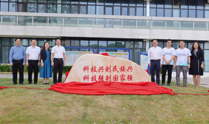 在热烈的掌声中,校领导、学校相关职能部门负责人、学院领导、校友代表共同揭开纪念石上的红绸,露出“科技兴则民族兴,科技强则国家强”十四个大字,现场气氛庄重而热烈。此纪念石与同是检验校友捐赠的南门校名石一起,将在未来的时光中陪伴广医学子度过求学时光,见证广东医的漫漫育人之路。
