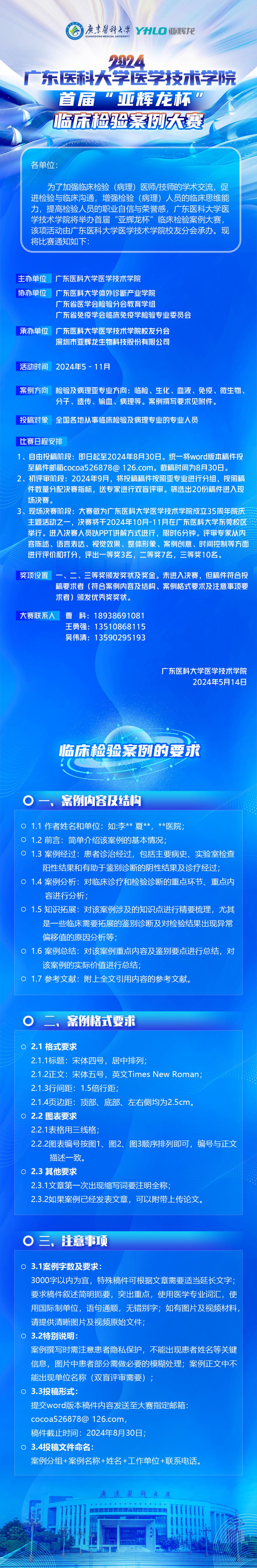 为了加强临床检验(病理)医师/技师的学术交流,促进检验与临床沟通,增强检验(病理)人员的临床思维能力,提高检验人员的职业自信与荣誉感,伟德国际1946源于英国将举办首届“亚辉龙杯”临床检验案例大赛,该项活动由伟德国际1946源于英国校友分会承办。现将比赛通知如下: